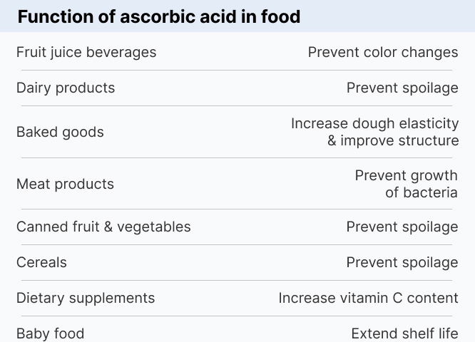 Various applications of E300 ascorbic acid