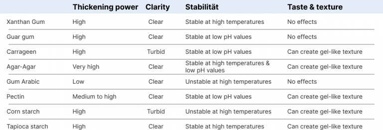 more sustainable thickener. It is important to note that each thickener has its own advantages and disadvantages, and that choosing the right thickener depends on several factors, such as the type of food, desired texture and viscosity, and cost.
